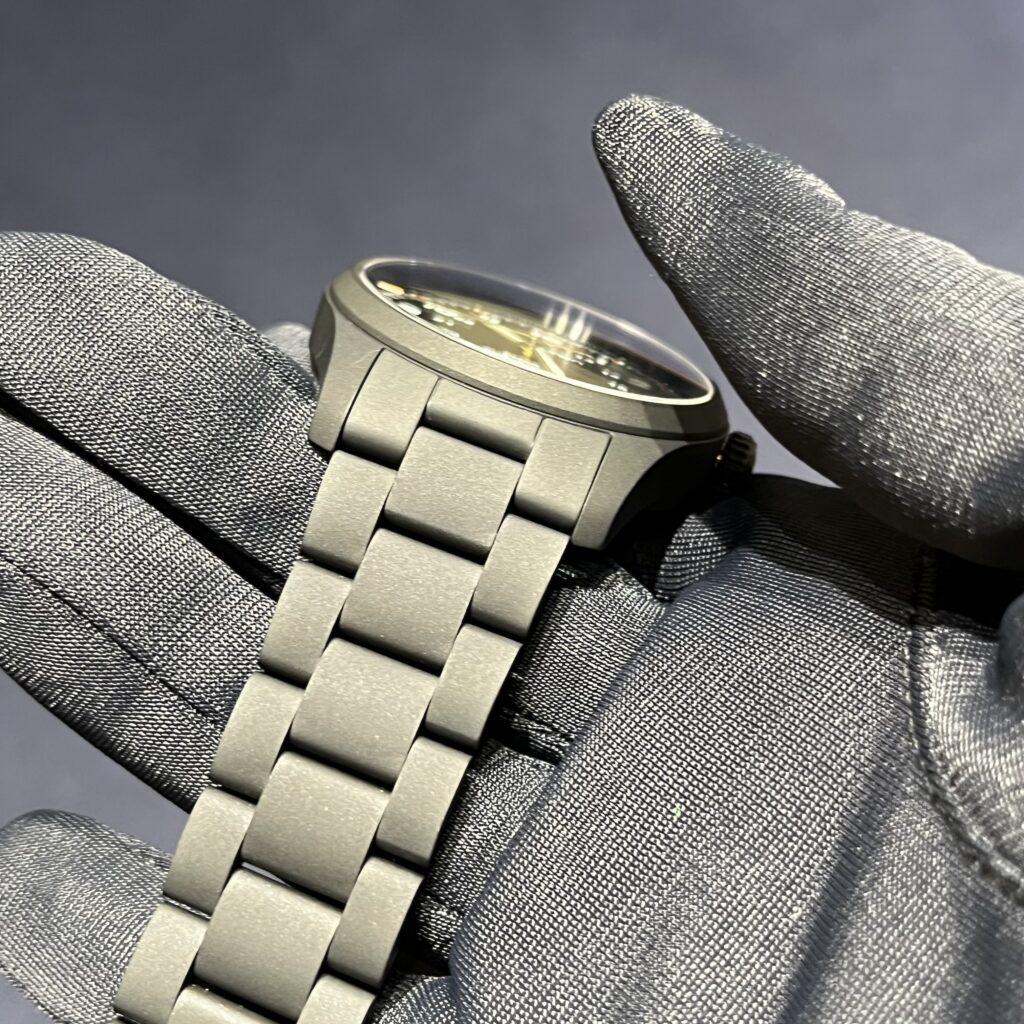 ブラックPVD×チタンの質感は、控えめながらも確かな存在感を放ちます。