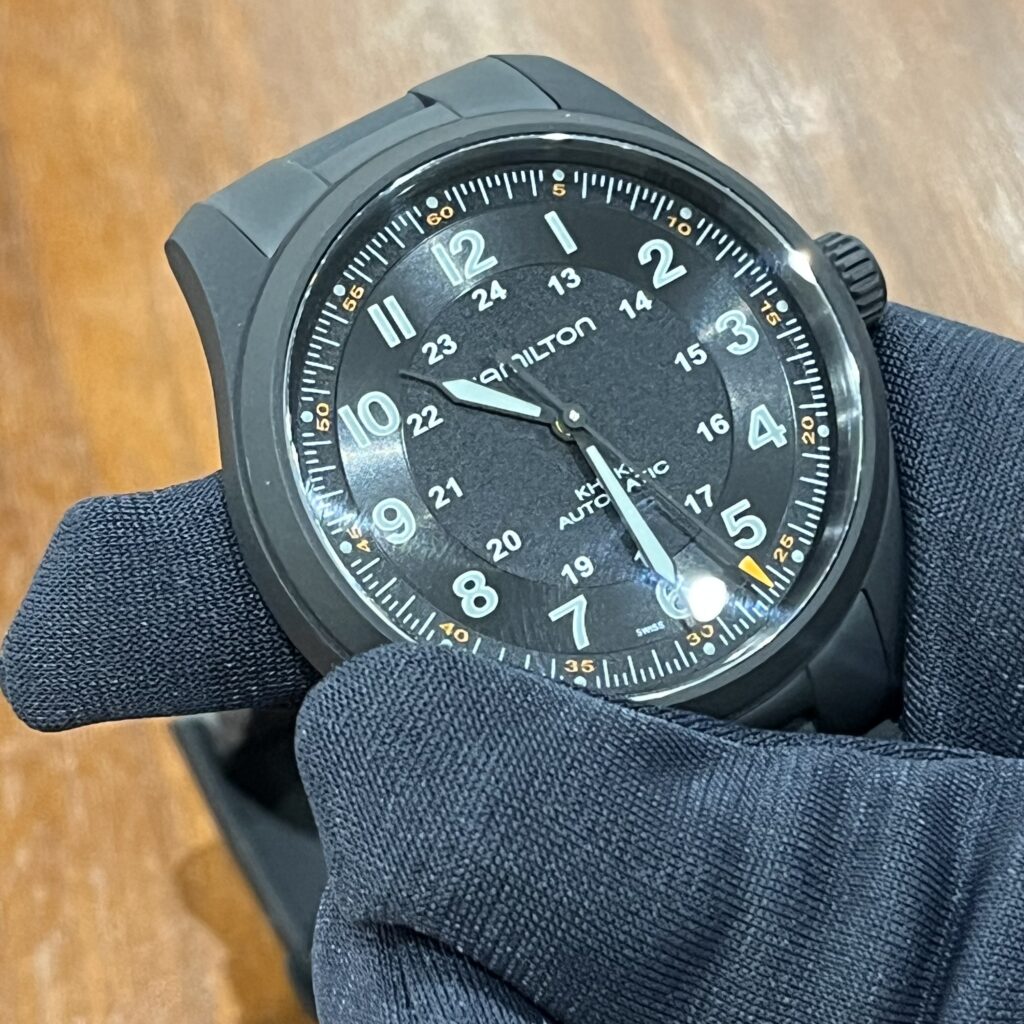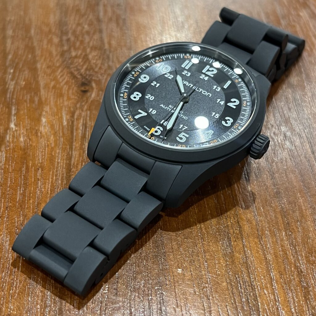 その中でも「カーキ フィールド チタニウム オート」 H70215130は、軽量チタン×ブラックPVD仕上げという独自の組み合わせで、普段使いにとても適したモデルです。それでは H70215130をさっそくご紹介していきたいと思います。