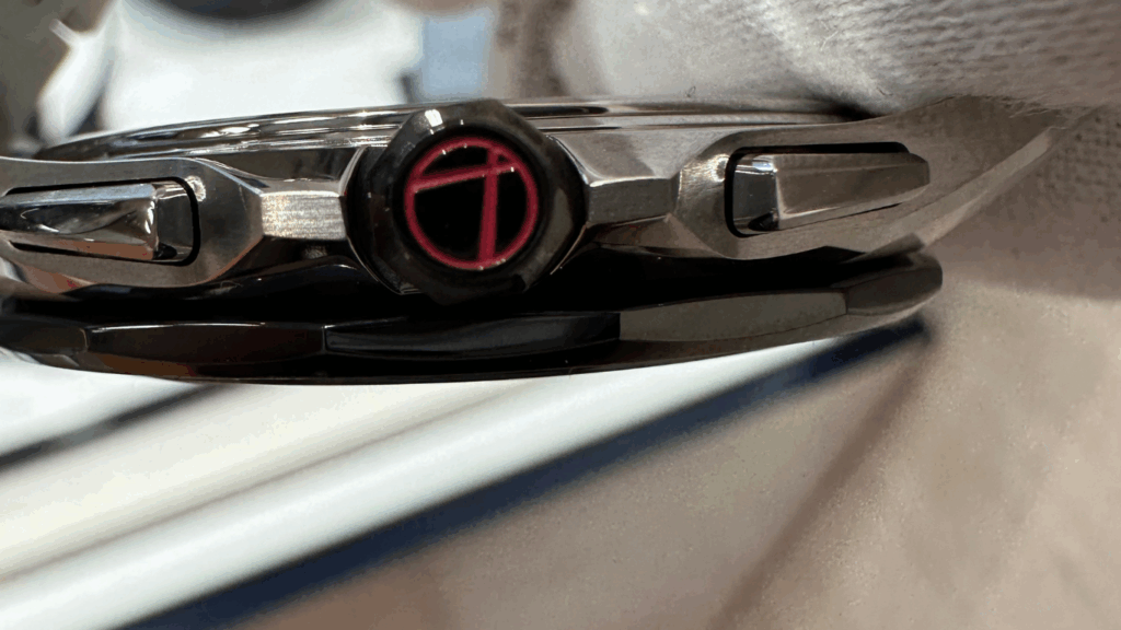 オシアナスのアイコンの下とりゅうずには『OTマーク』が付き、オシアナスとのコラボレーション要素をしっかりと表現しています。バックルには刻印でOTマークが。