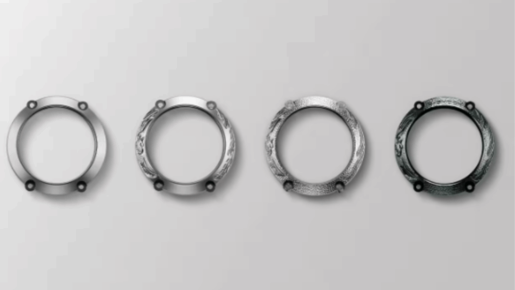 小林正雄氏自身がベゼルの彫刻を手掛け、肉合彫り(ししあいぼり)という技法が用いられ、