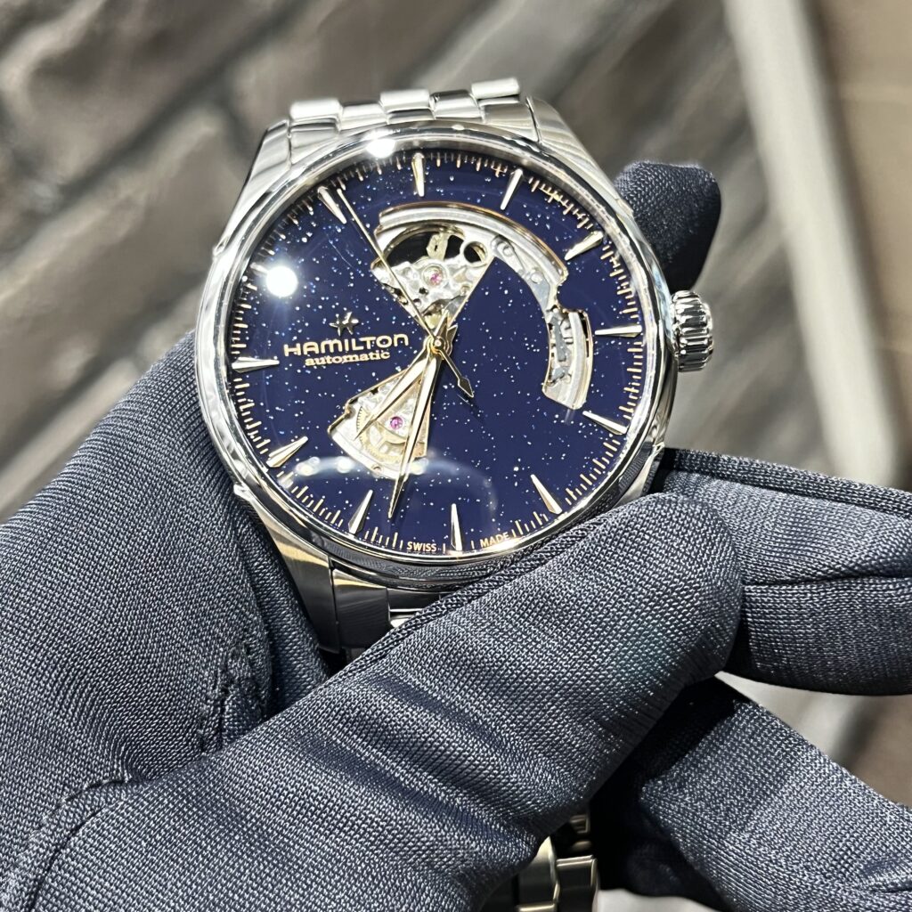 ハミルトンの人気シリーズ「ジャズマスター オープン ハート」に、アベンチュリン(砂金水晶)を着想源とした特別なダイヤルを備えたモデル H32705140 がサイズ違いで入荷しております♪