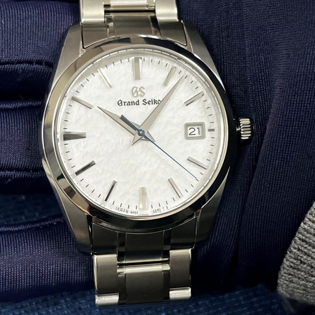 グランドセイコーを代表する文字盤のひとつ、通称「雪白(ゆきしろ)ダイヤル」。