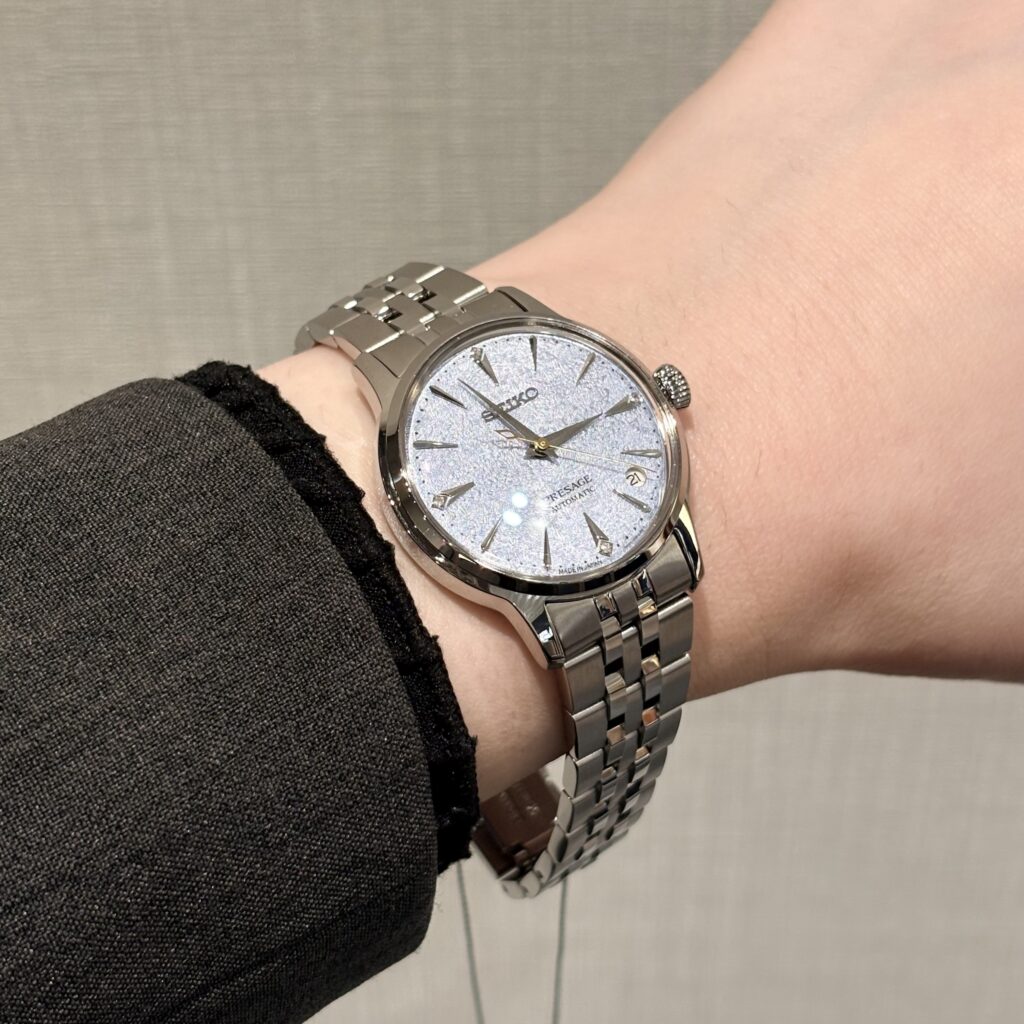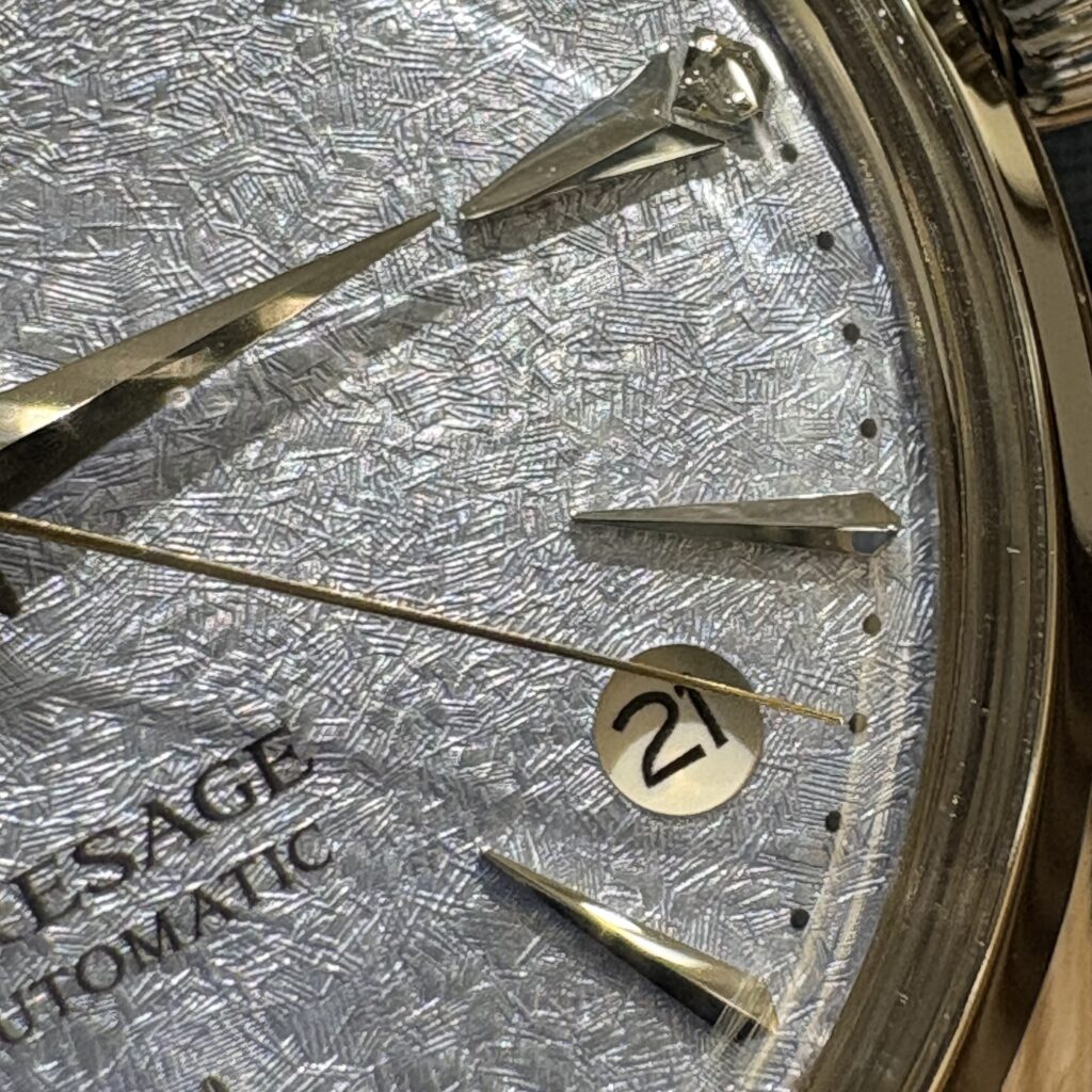 SRRY049の文字盤は、光の当たり方でふっと表情が変わります。